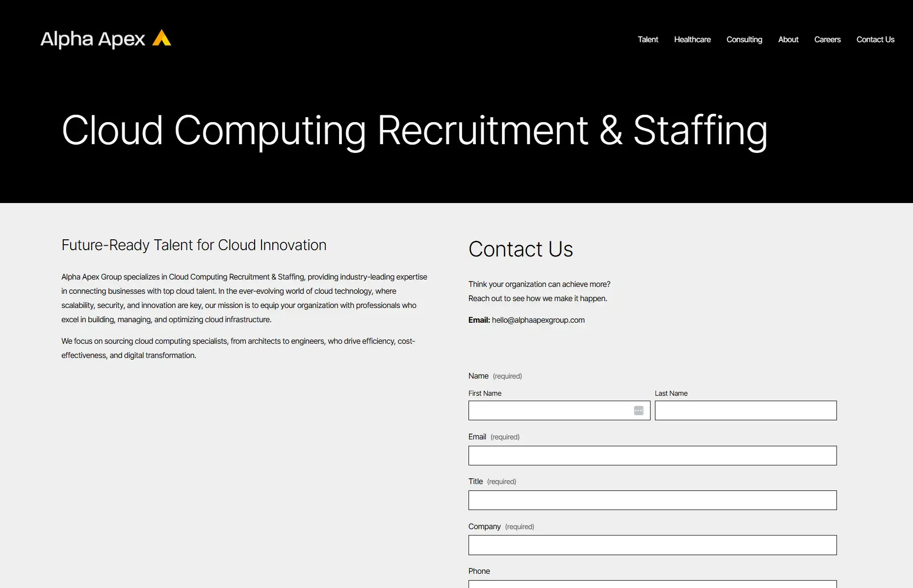 Alpha Apex Group combines in-depth cloud computing expertise with a tailored approach to recruitment, ensuring organizations secure the best talent for their needs. Their commitment to understanding both client goals and industry trends makes them a trusted partner in cloud computing staffing solutions.