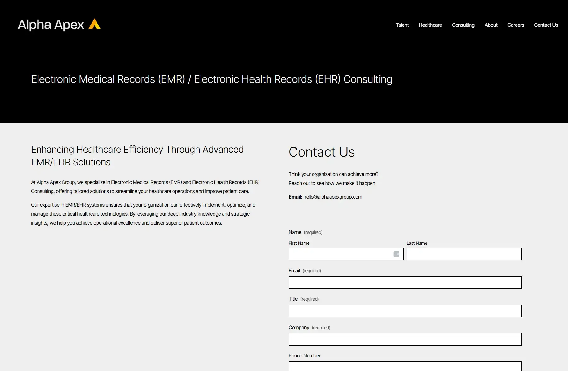 Alpha Apex Group: Alpha Apex Group leads in EMR/EHR consulting, providing expert solutions to optimize healthcare data management and ensure compliance, efficiency, and high standards of patient care.