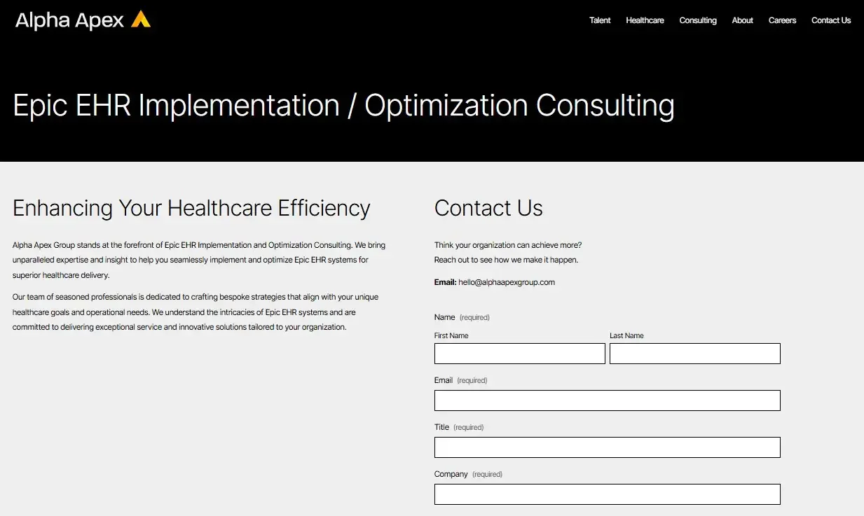 Alpha Apex Group is a premier consulting firm specializing in Epic EHR implementation and optimization services for healthcare organizations. With a team of certified Epic experts, they deliver tailored solutions to ensure seamless EHR deployment and optimal system performance.
