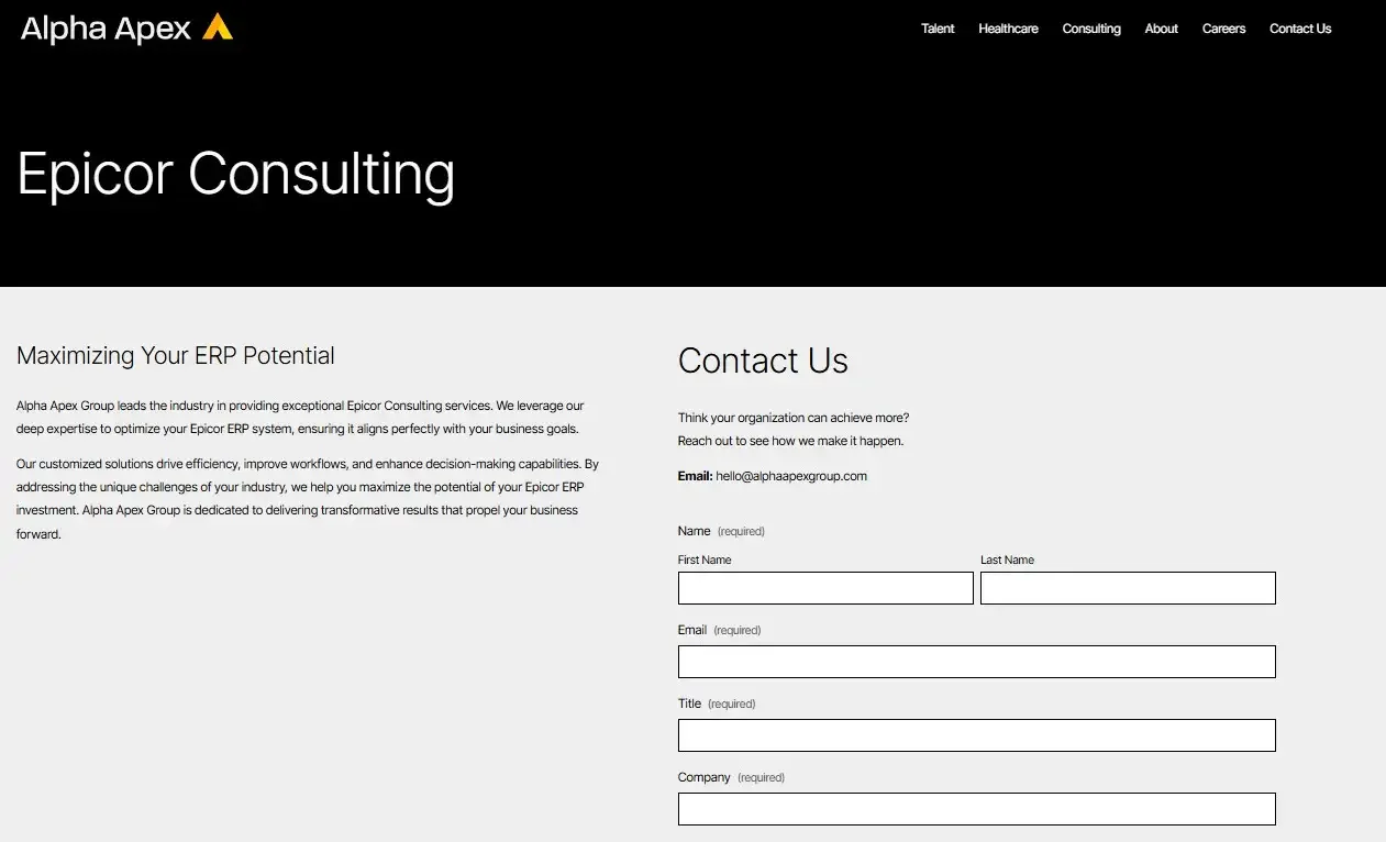 Alpha Apex Group: Alpha Apex Group is a premier provider of Epicor consulting services, renowned for optimizing business operations through customized solutions that drive efficiency and growth with seamless implementation, integration, and support.