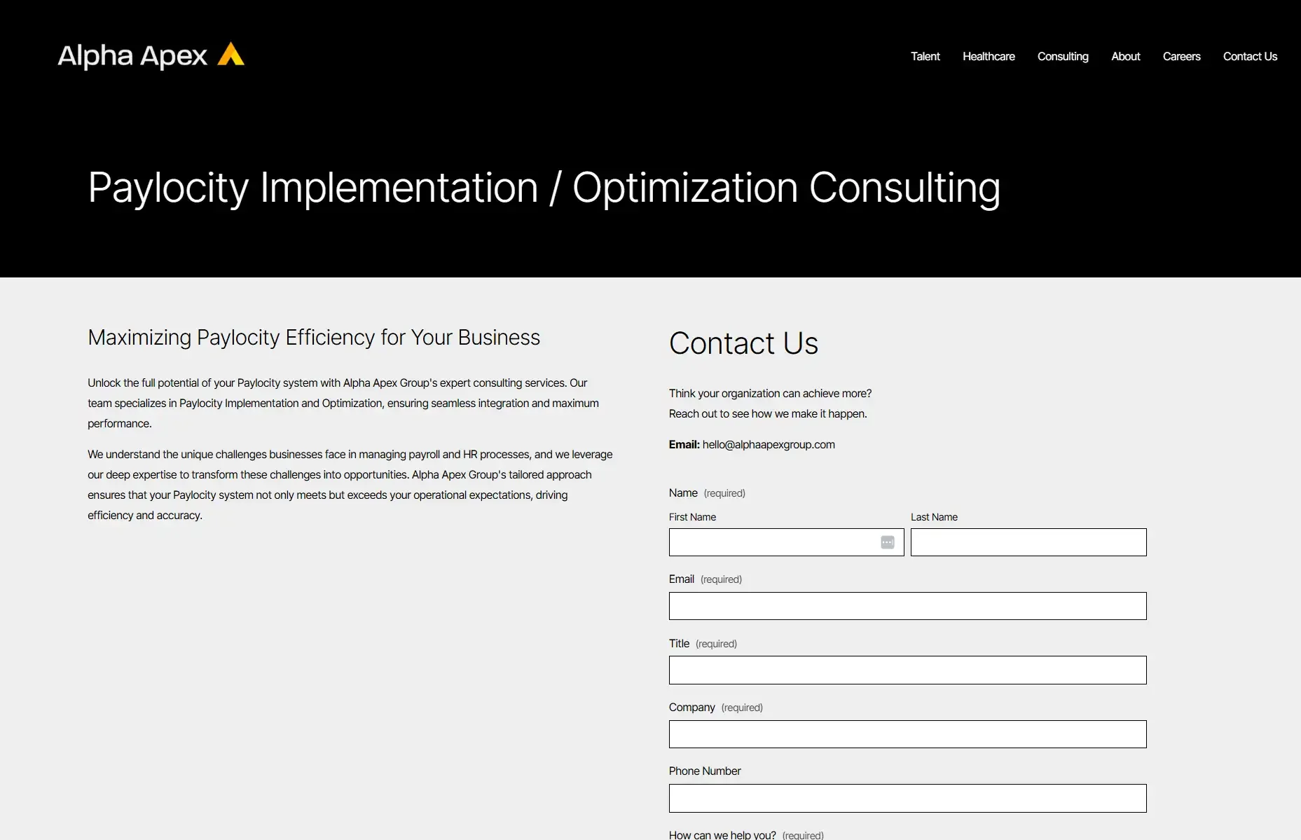 Alpha Apex Group is a premier consulting firm specializing in Paylocity implementation and optimization, helping businesses streamline their payroll and HR processes for maximum efficiency. With a proven track record of successful implementations, Alpha Apex Group ensures that clients fully leverage the capabilities of Paylocity to achieve operational excellence.