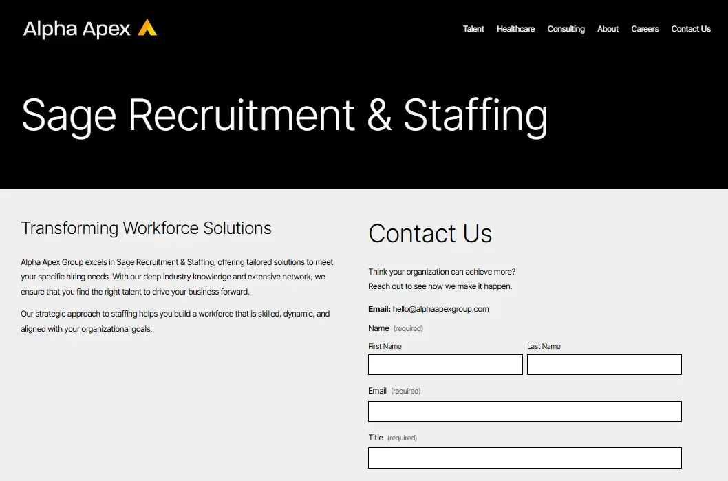 Alpha Apex Group: Alpha Apex Group connects organizations with top Sage experts, offering executive search, management consulting, and flexible leadership solutions to improve business processes and digital presence