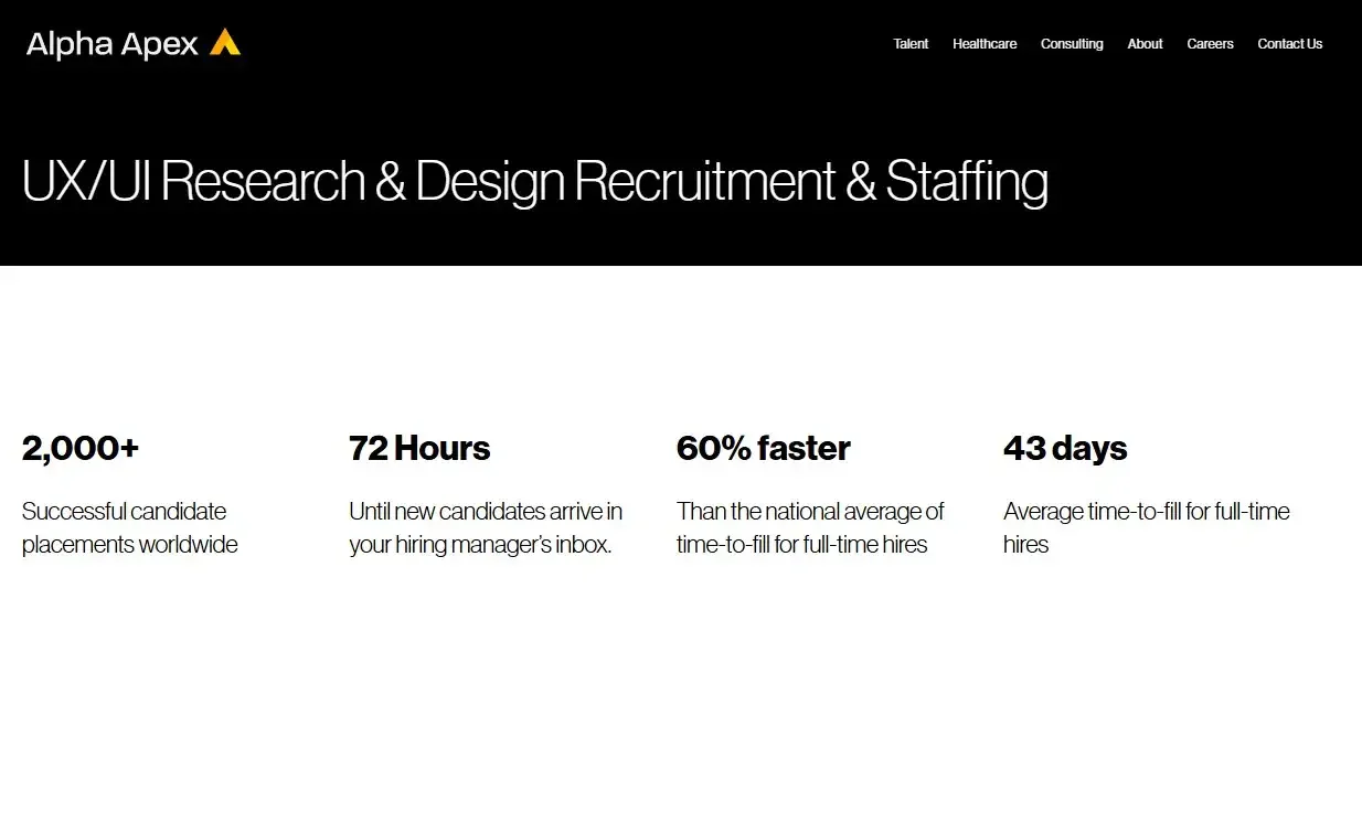 Alpha Apex Group: Alpha Apex Group, distinguished for recruiting exceptional UX/UI talent, offers comprehensive solutions to enhance digital product design and user experience.
